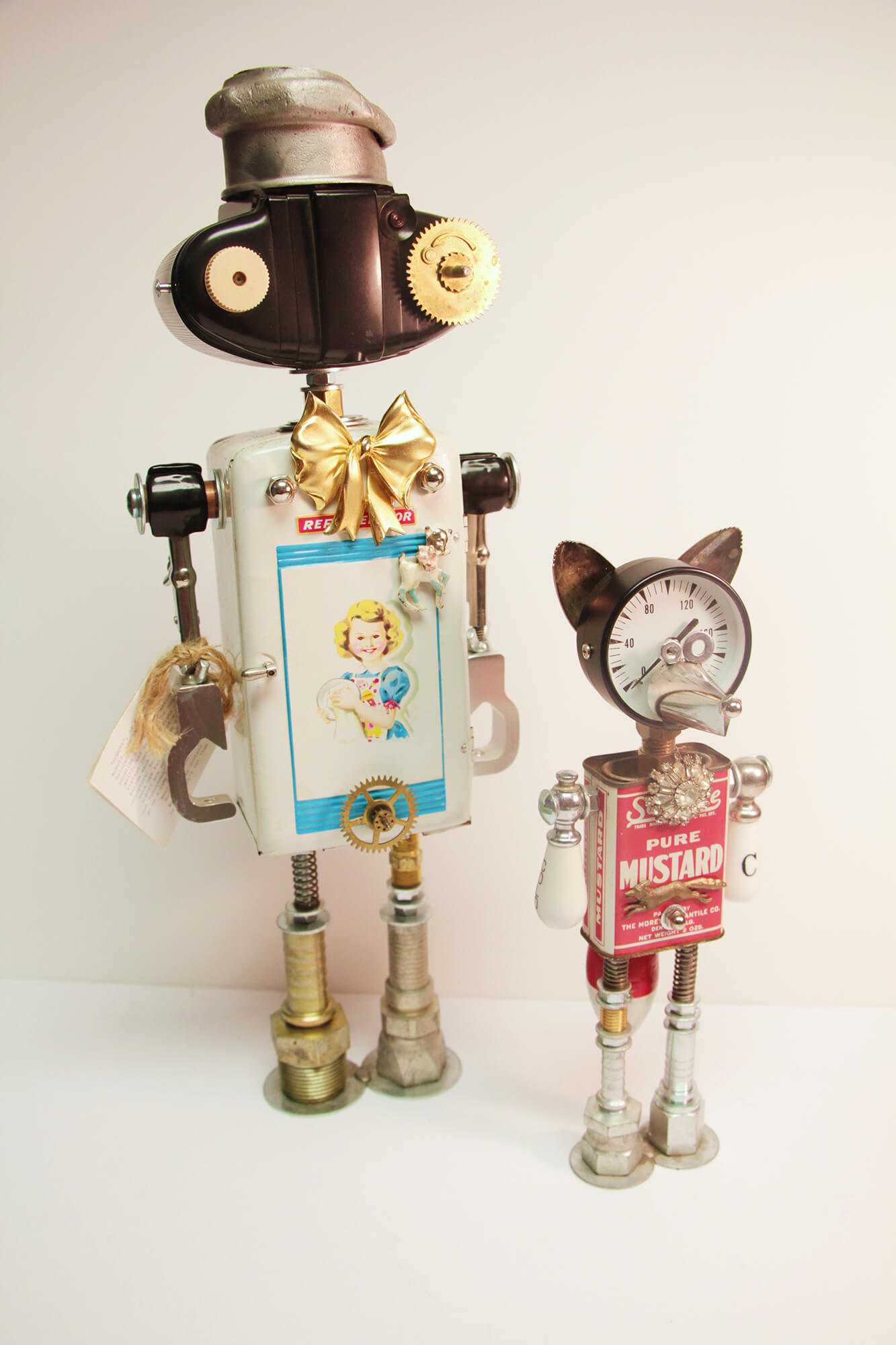 After over 25 years as a professional illustrator, Amy started making robots to fill the time between illustration jobs. Now, it’s her passion, as it combines two of her favorite pastimes; making things and shopping. She scours flea markets, basements, internet auctions, and scrapyards for cool old junk. Amy then solders and bolts the pieces together to create sturdy, one-of-a-kind sculptures, never to be duplicated.