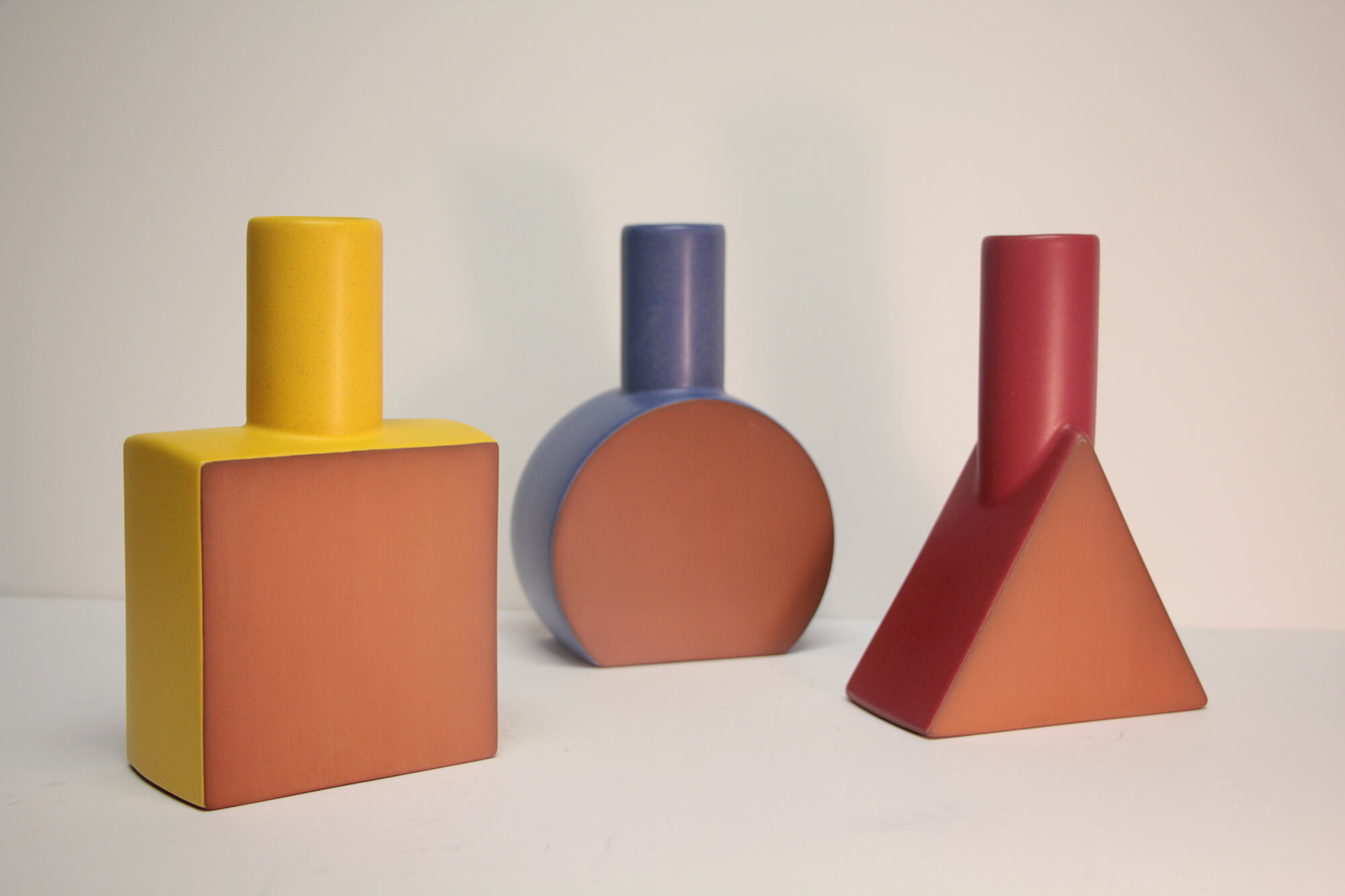 Paul Eschelman / Vases: Red Triangle, Yellow square, Blue circle (Three Bottles)